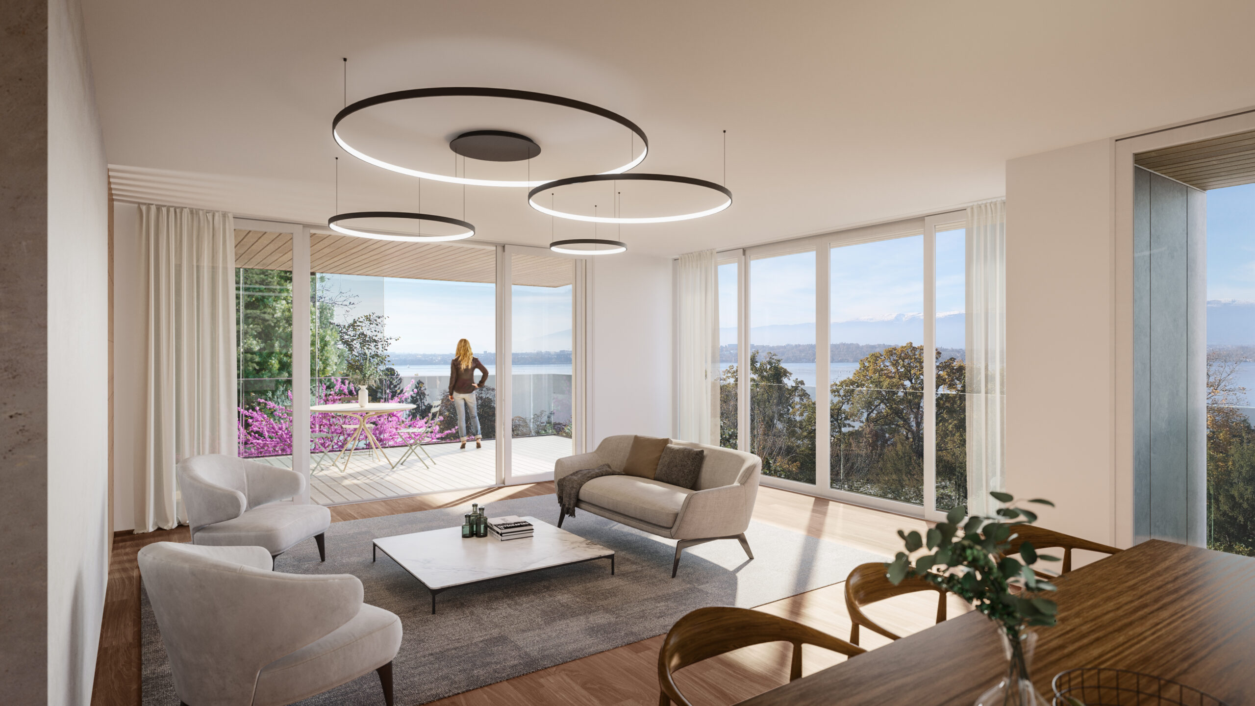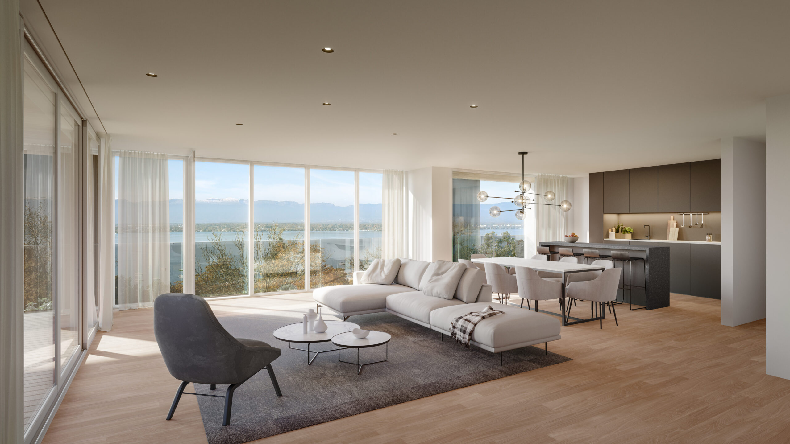 Du 3 au 6 pièces, ces logements de prestige bénéficient également d’une situation exceptionnelle entre ville et campagne, d’une orientation et d’un ensoleillement optimum, ainsi que, pour les étages supérieurs, d’une vue sur le lac Léman et le Jura.